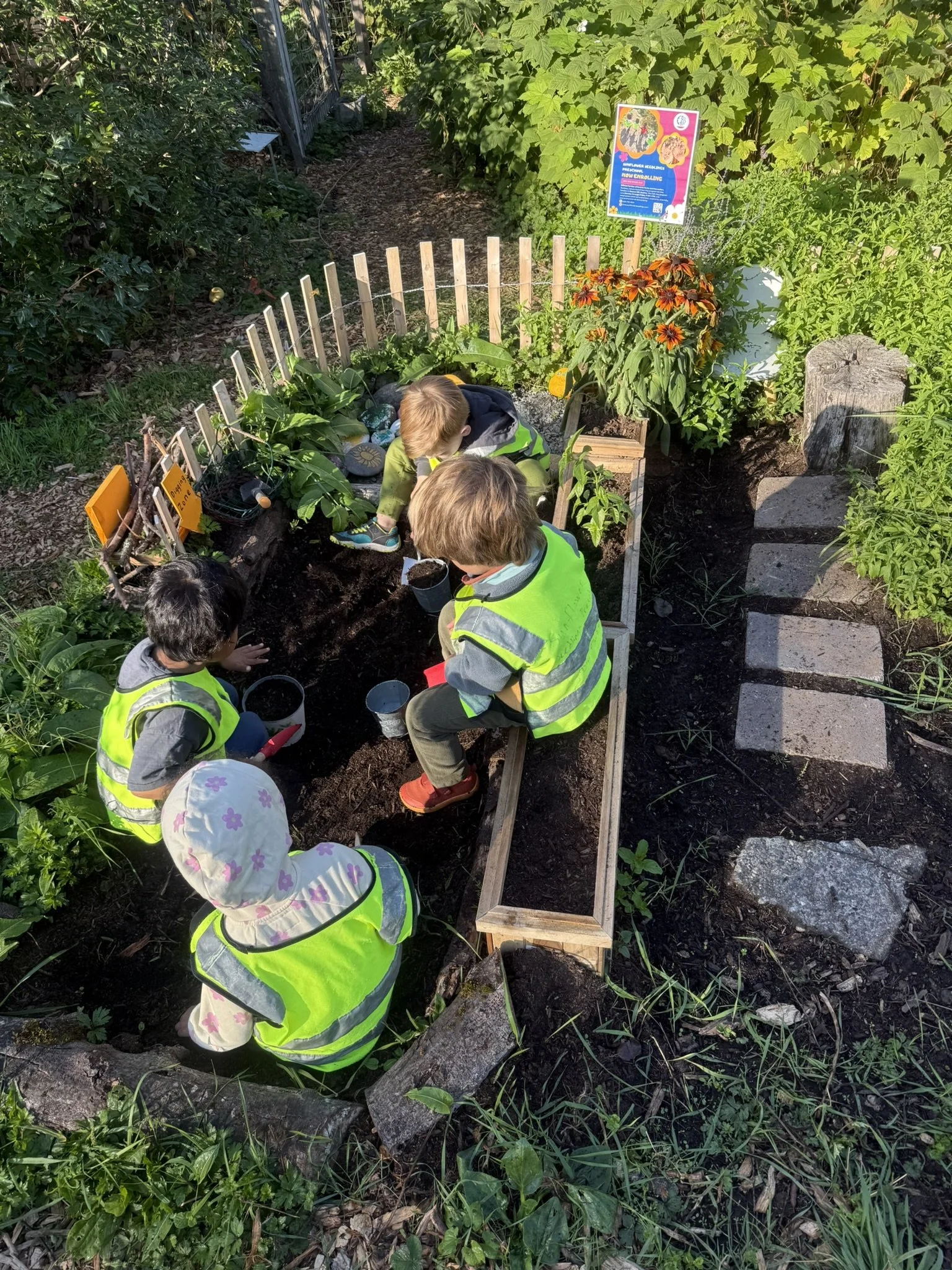 At Sunflower Seedlings Preschool, we believe the outdoors is the best teacher. Our nature-based program invites children to learn through sensory play, creative movement, storytelling, art, and gardening. Every day is an opportunity to explore, imagine, and connect—with nature, with one another, and with themselves. Through hands-on discovery and child-led play, we nurture curiosity, creativity, and a sense of belonging.